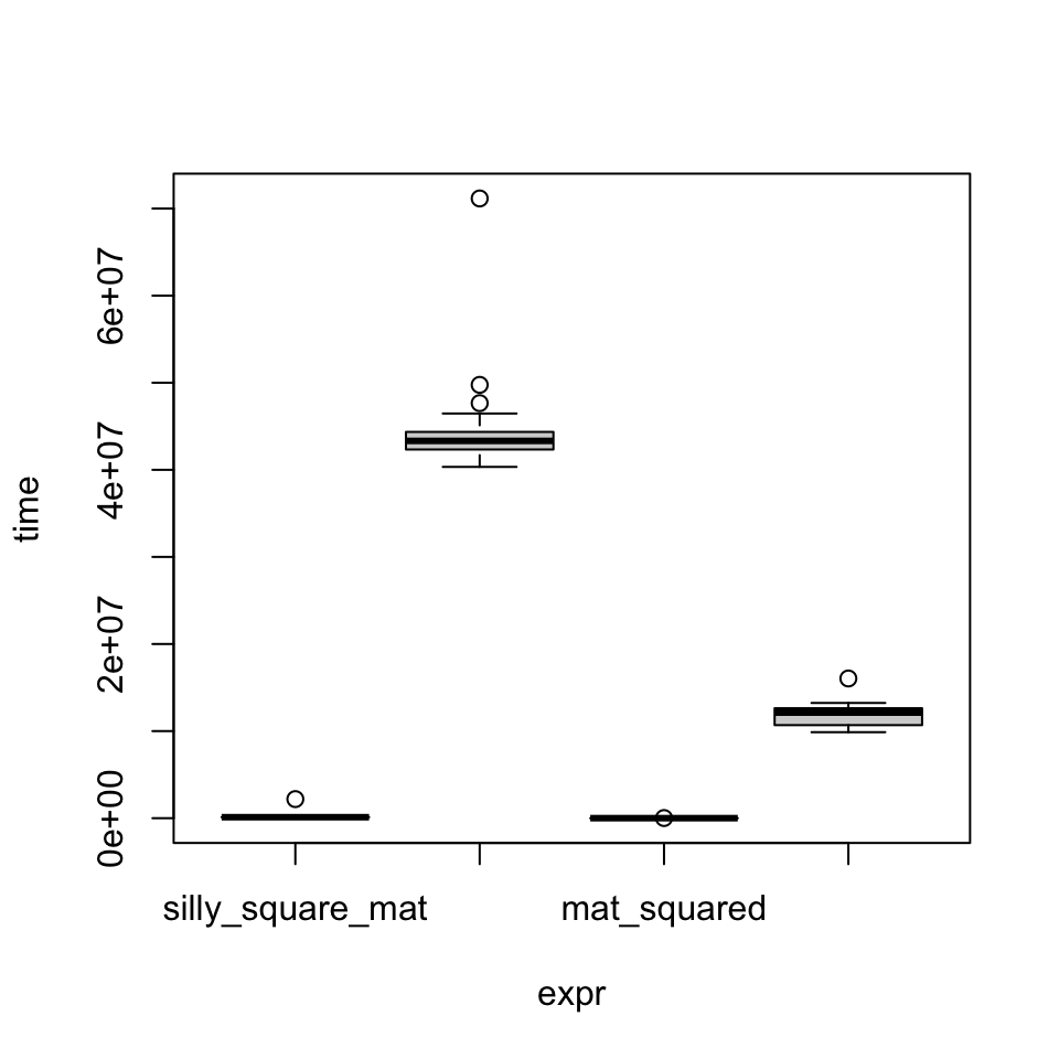 )Warning in microbenchmark(silly_square_mat = silly_square(xmat),